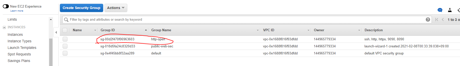 아주 혹시나 Security Group 이나 Subnet이 어디서 설정 되는지 모를 수 있음으로 관련 페이지를 아래와 같이 캡쳐해 본다.