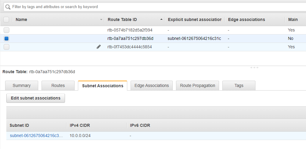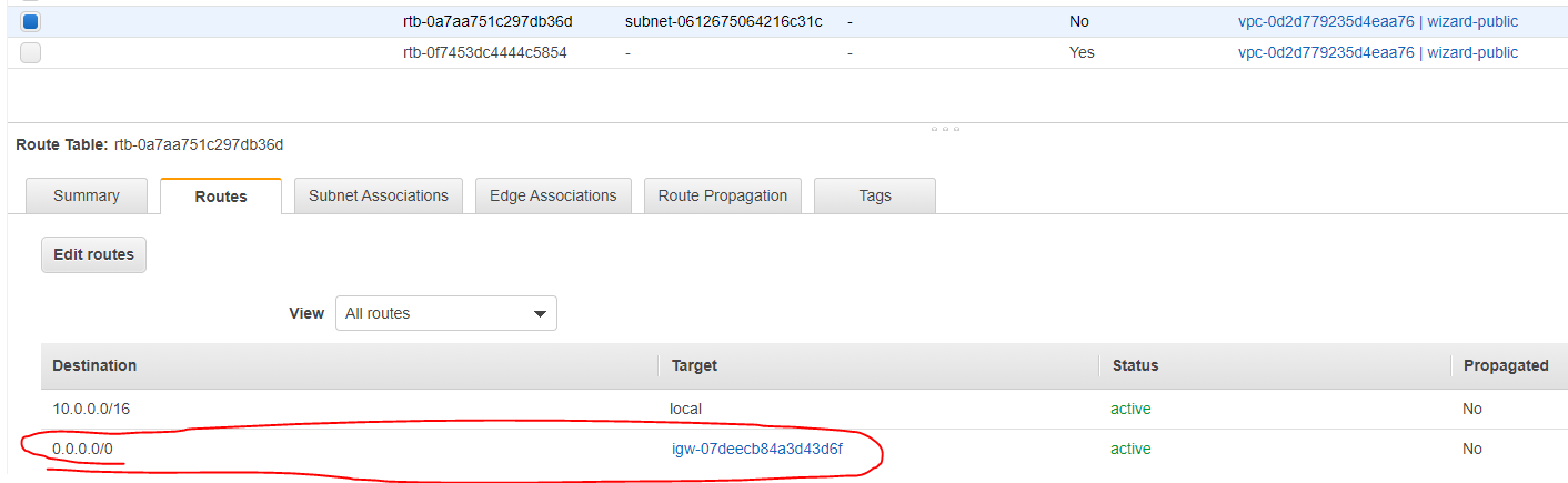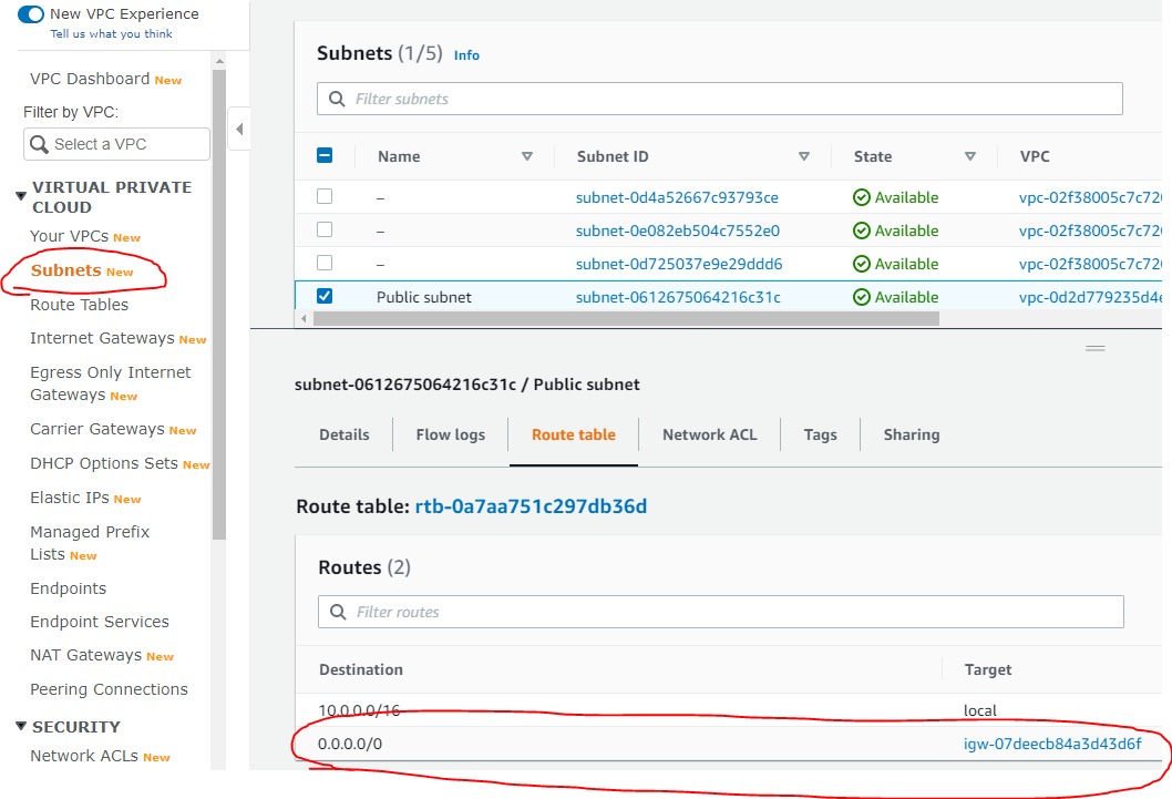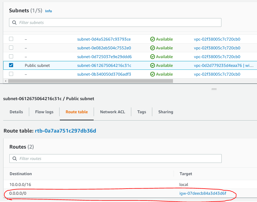 Subnets에 Route table이 Internet Gateway와 연결된 것을 확인 할 수 있다.