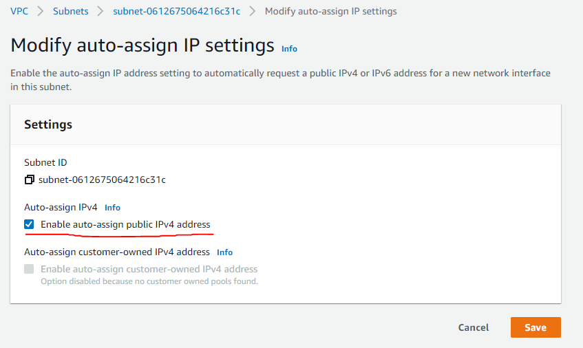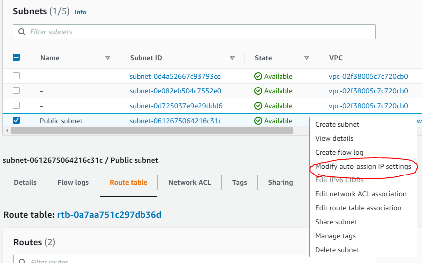 이렇게 설정을 하면 해당 Subnet에 들어오는 Instance는 자동으로 Elastic IP를 받게 된다.