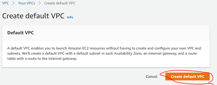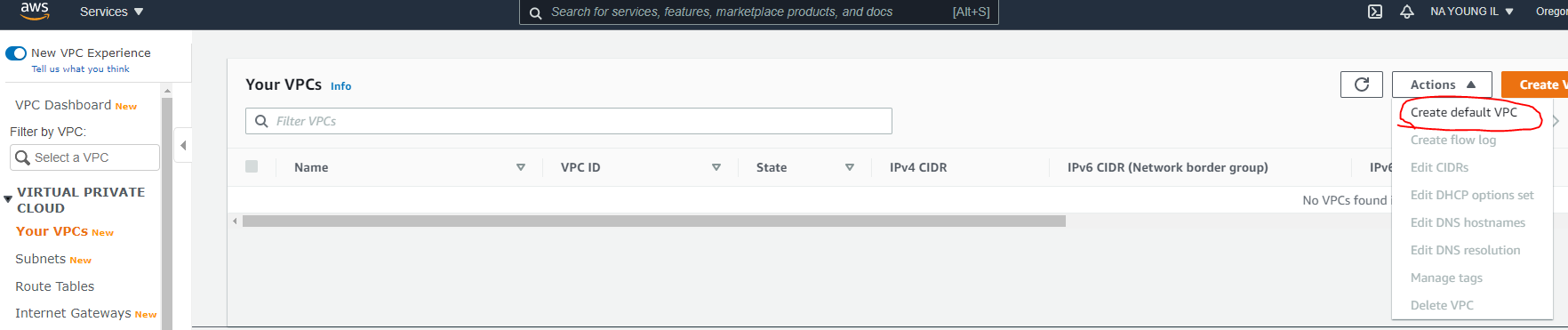 AWS에서 직접 Default VPC를 만드는 방법이다.