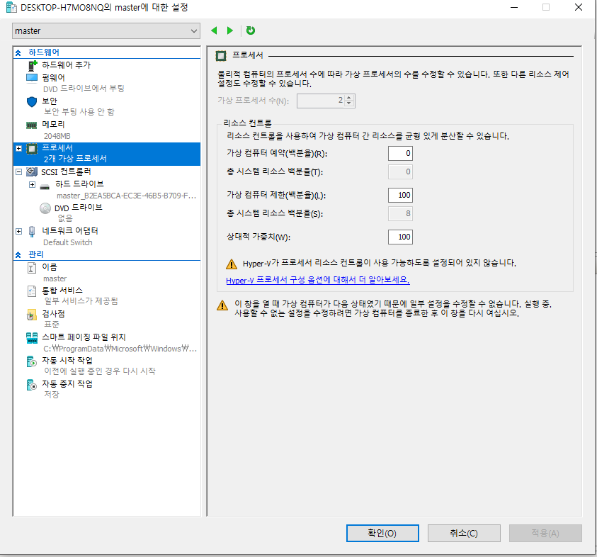 쿠버네티스를 Hyper-V를 사용해서 install 하고