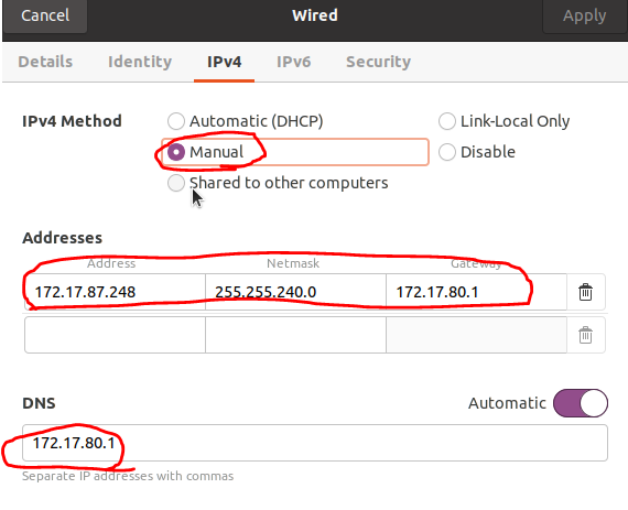 고정 ip는 DHCP로 배정 받은 ip를 기준으로 설정 하면 된다.
