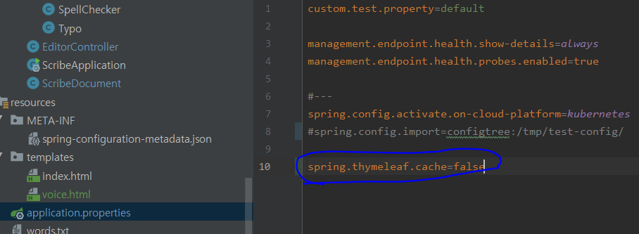 - Template Caching Disable : spring.thymeleaf.cache=false 설정을 application.properties에 설정해 다.