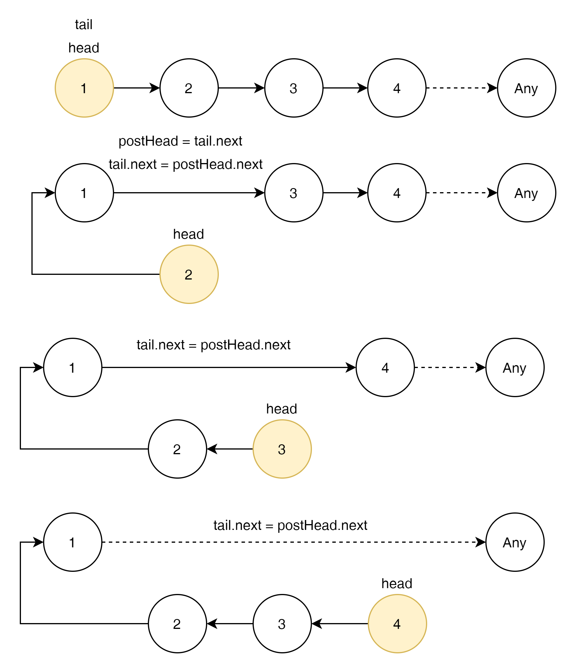 1번 Node는 가장 처음 head Node이자 최종적으로 Tail Node가 되게 된다.