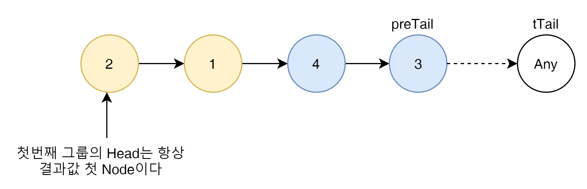 resultHead는 preTail이 없는 최초의 경우 임으로 결과 값으로 돌려줄 첫번째 값을 저장한다.