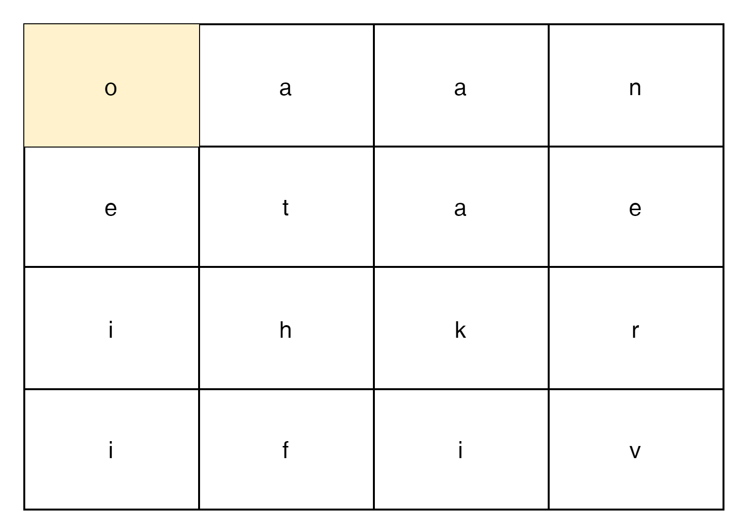 가령 'o'가 있이니까 Dictionary내에서 'o'가 있는 모든 words를 1회 search한다.