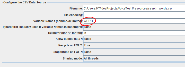 CSV를 사용한 변수 입력
