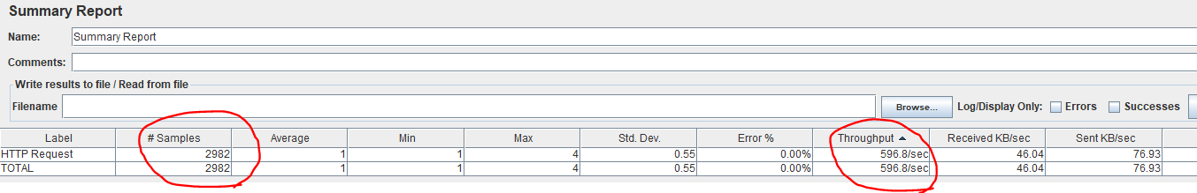 시작 버튼을 누르면 Summary Report에 통계 값이 표시 된다.