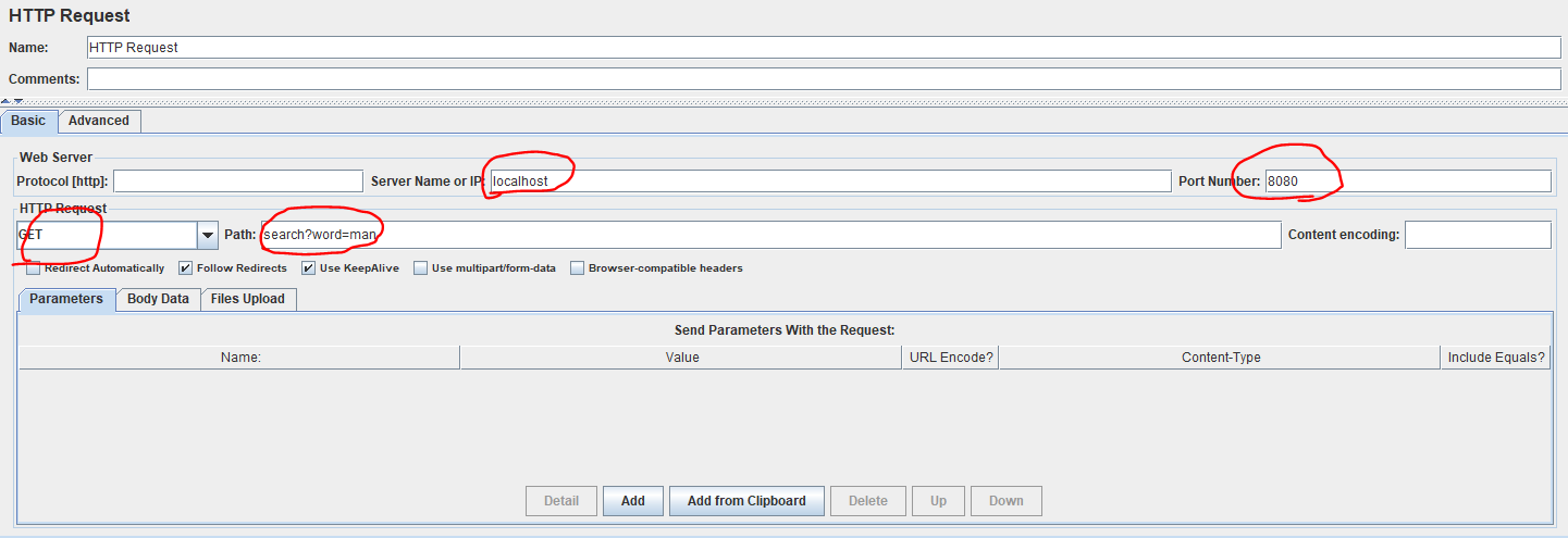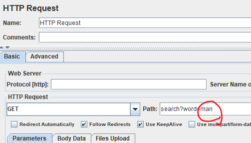 추가된 Http Request에 테스트하고자 하는 url을 적어주자.