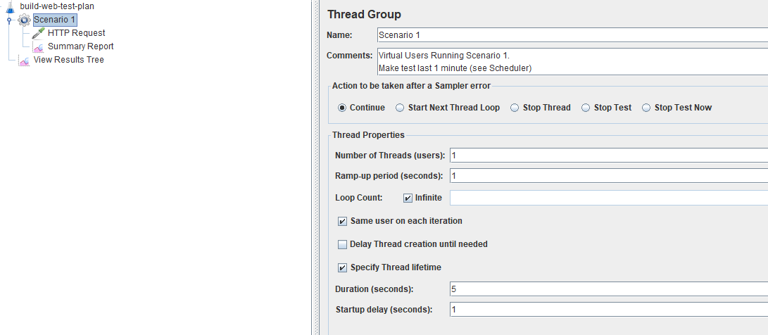 Startup Delay는 시작 버튼을 누르고 몇 초 후부터 테스트를 실행할 지를 나타낸다.
