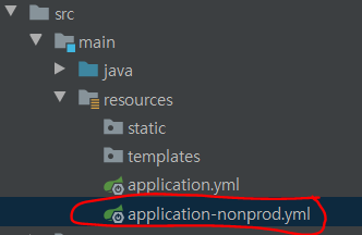 물로 이때 application.yml의 active를 nonprod로 변경해 줘야 한다.