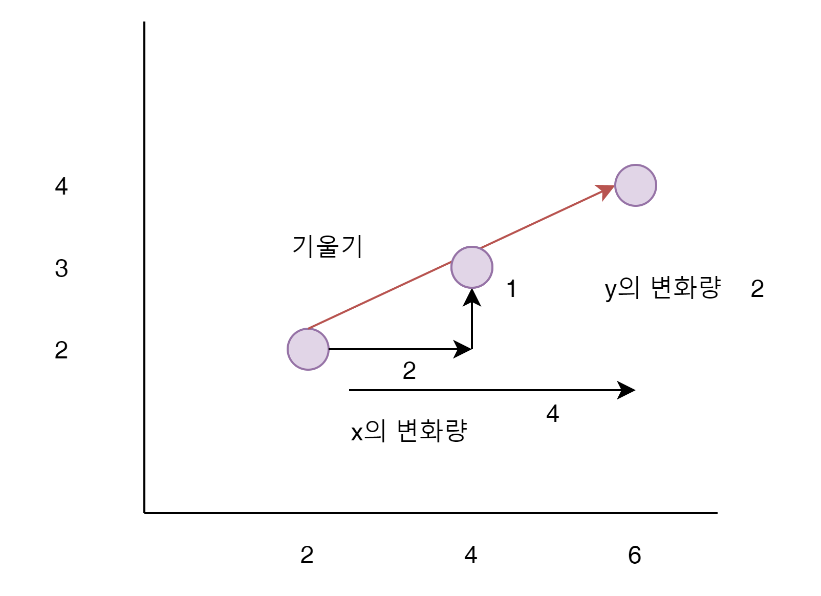 - x변화량 2 = 4 / 2(gcd)