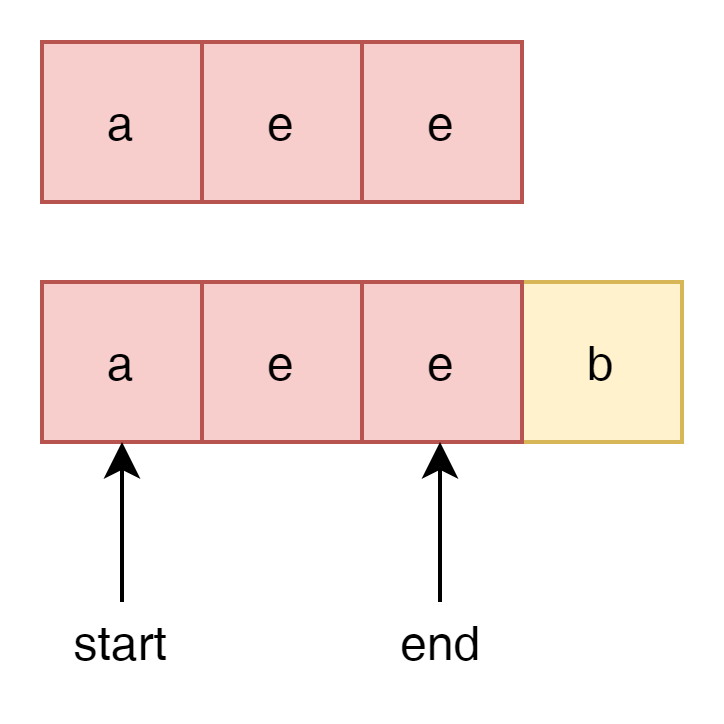 aee까지 모두 같은 값이 있고 마지막 한자리만 다르다면 true를 return 하면 된다.