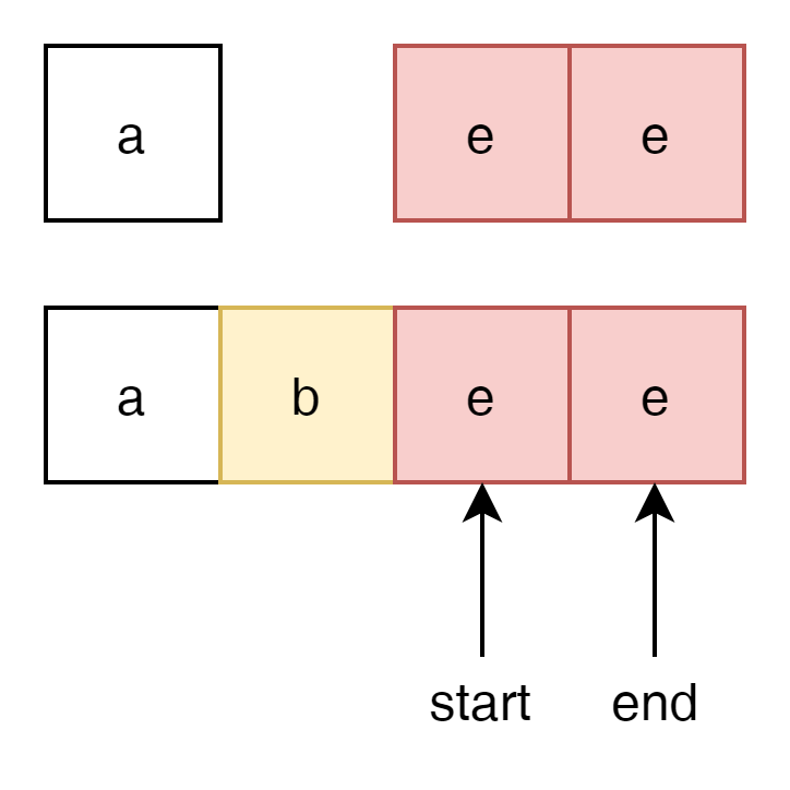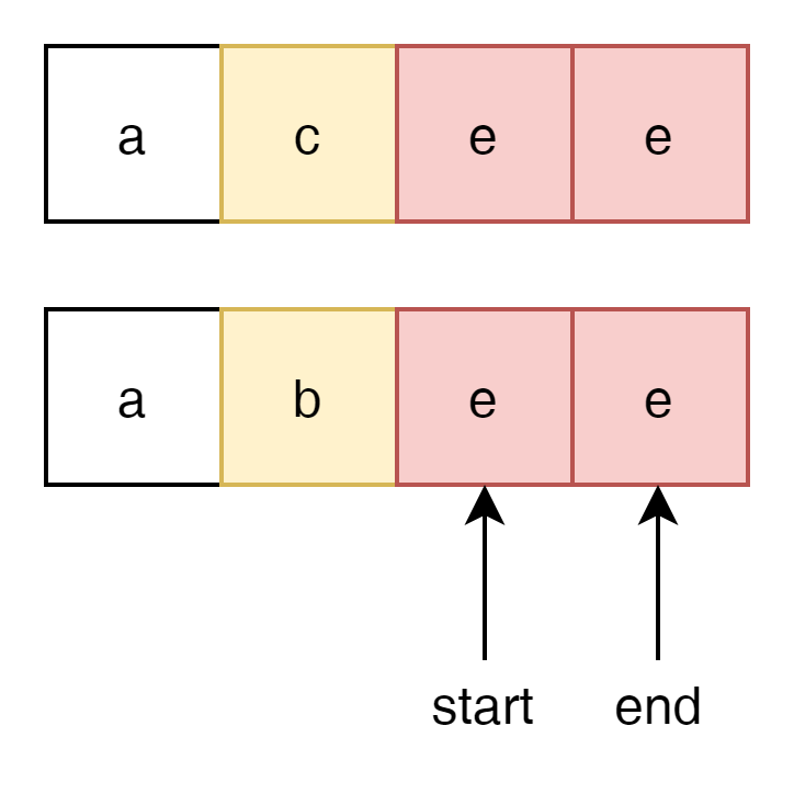 상기의 예를 보면 c와 b가 달라지는 지점을 찾았고, 이후의 두개의 value ee,ee는 무조건 같아야 한다.