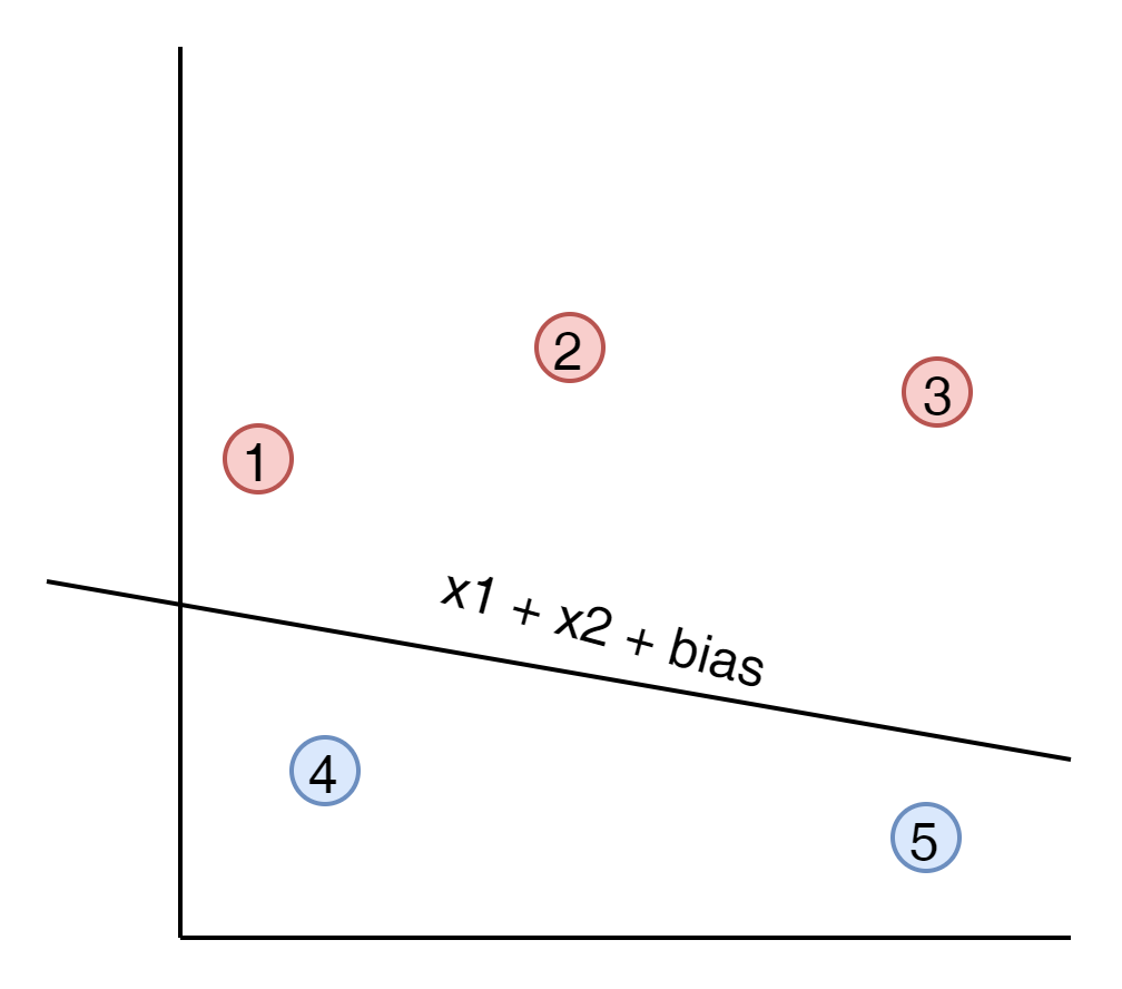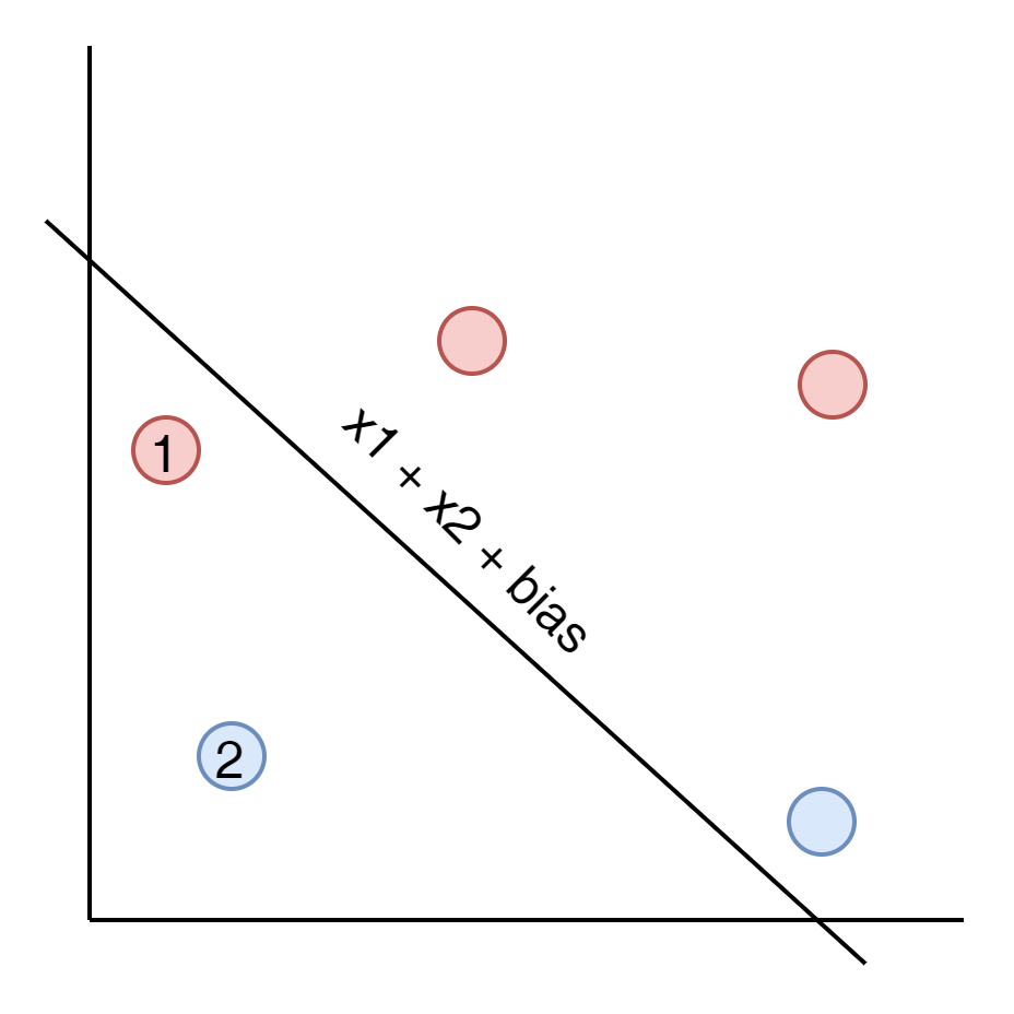 분리된 선을 기준으로 아래쪽을 파란영역 위 쪽을 붉은 영역이라고 보면