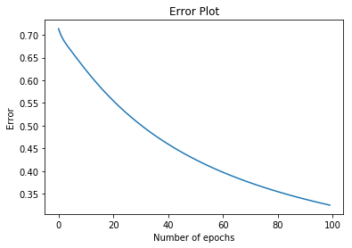 weights, bias = update_weights(x, y, weights, bias, learnrate, output)