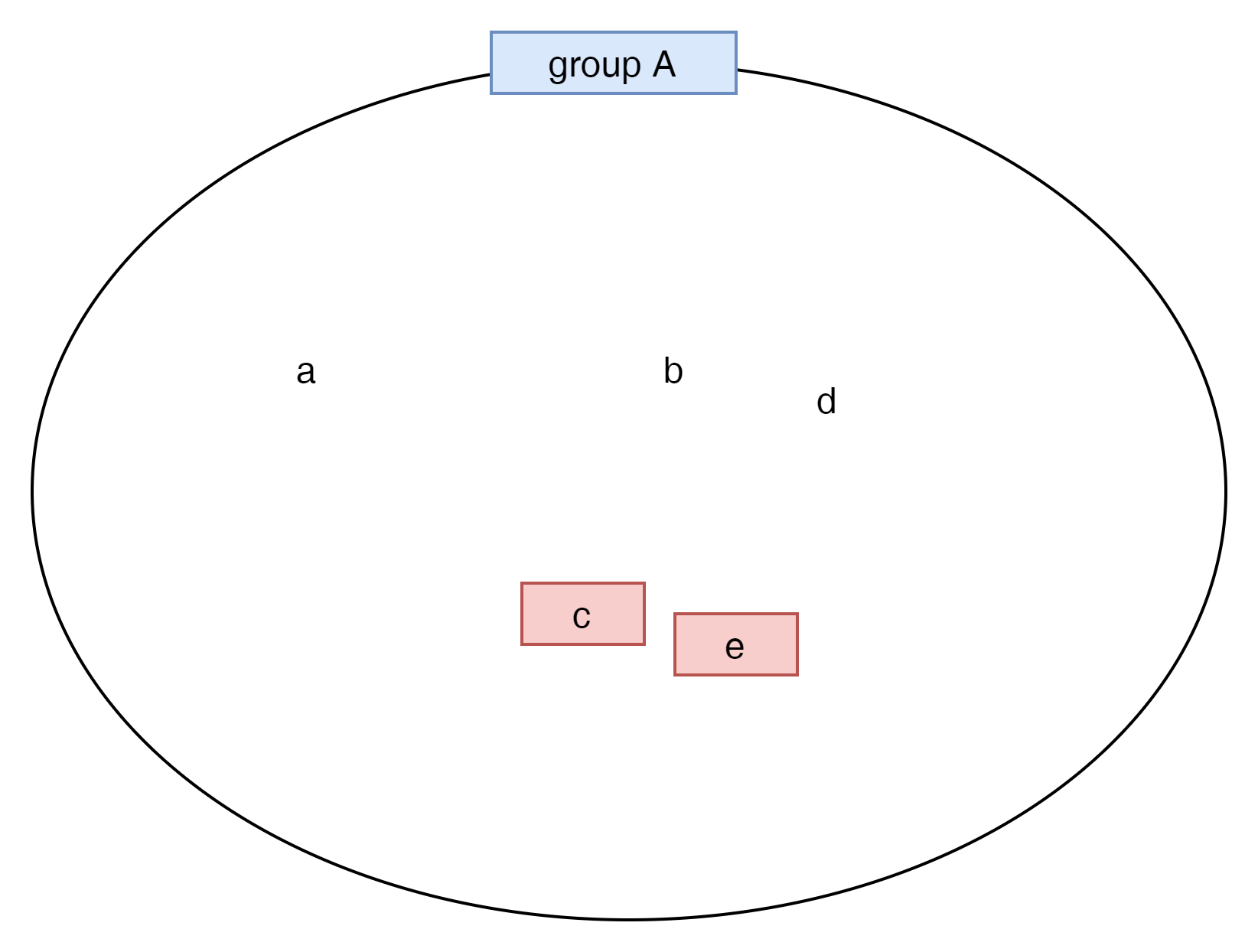 분명히 b와 c는 Group A라는 동일 그룹에 속하는데, 같지 않다라고 표현한것이다.