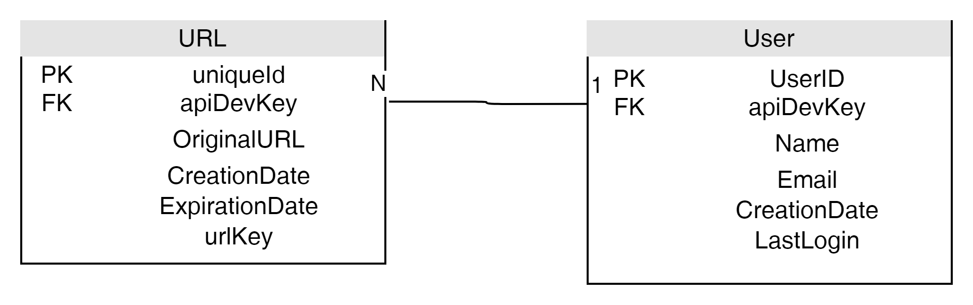 두개의 Table로 설계가 가능함, URLs 와 User의 관계로 나타낼 수 있다.