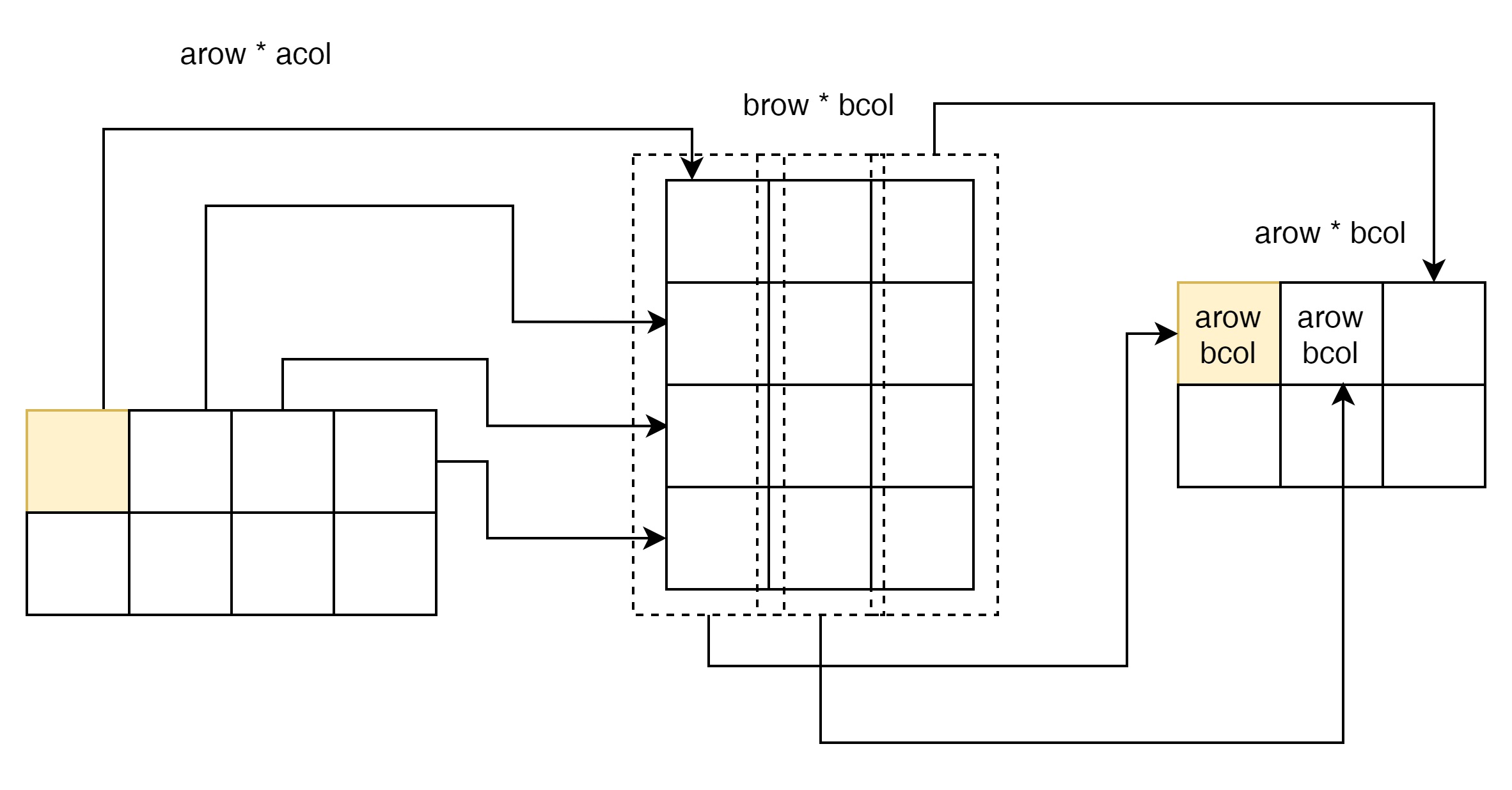 result[arow][bcol] += mat1[arow][brow] * mat2[brow][bcol];