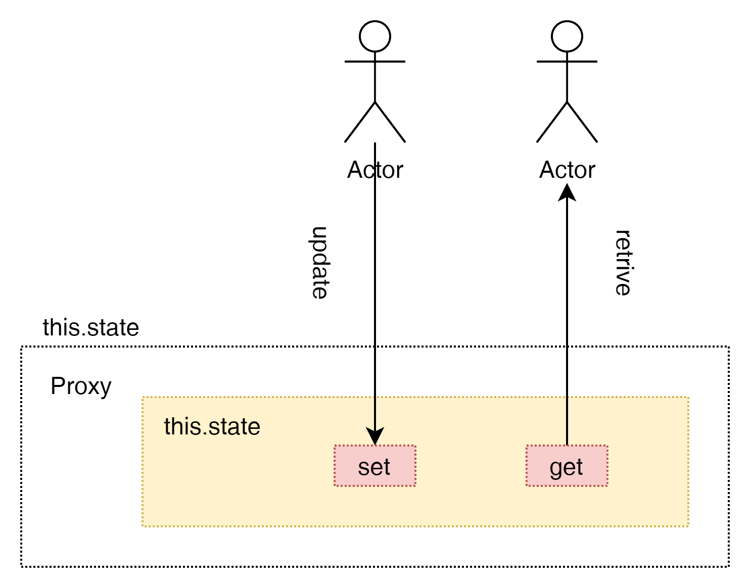 우리가 일반적인 개발을 할때, this.state에 어떤값을 assign하거나 get을 할 때 바로 "="을 사용하던가, 그냥 "this.state.items" 이런식으로 retrive를 하면 된다. 그런데 그사이에 끼어들어서 무언가를 더 하고 싶을때 Proxy라고 하는 기능이 활용된다.