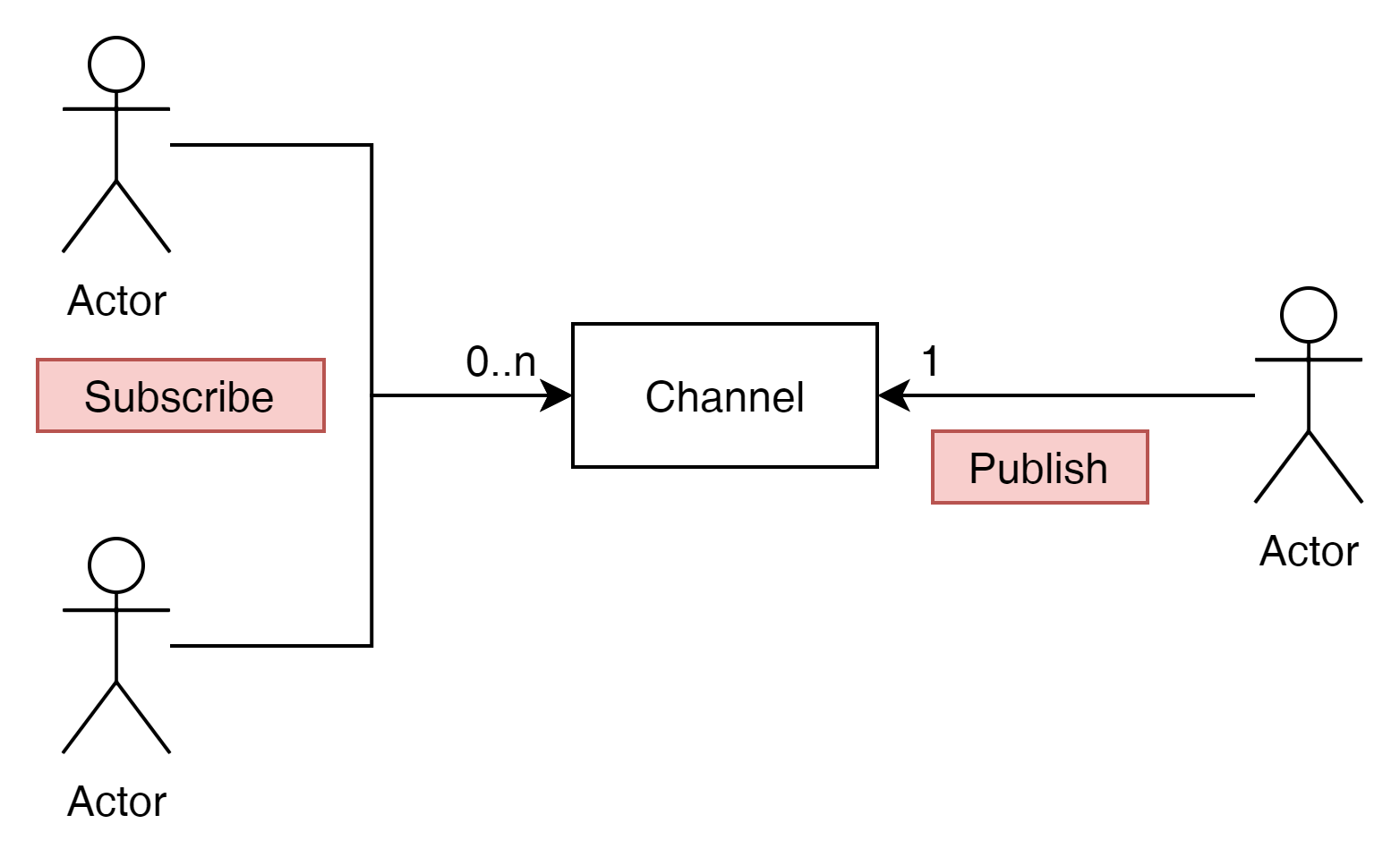 어떤 채널에 다수개의 Subscriber가 있을 때, 해당 채널로 하나의 Publisher가 Data를 발행하면 Subscriber들은 해당 Data를 무조건 받는 방식이다.