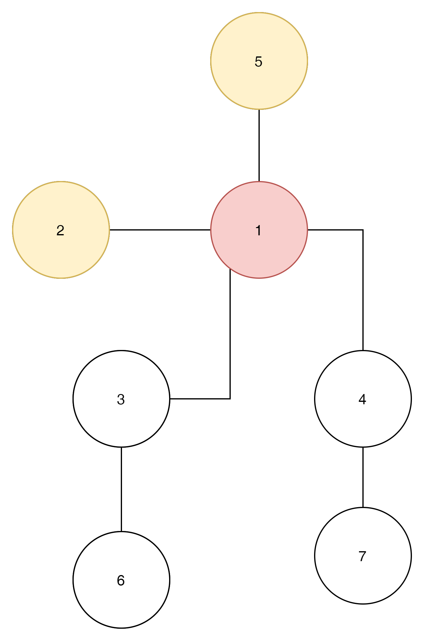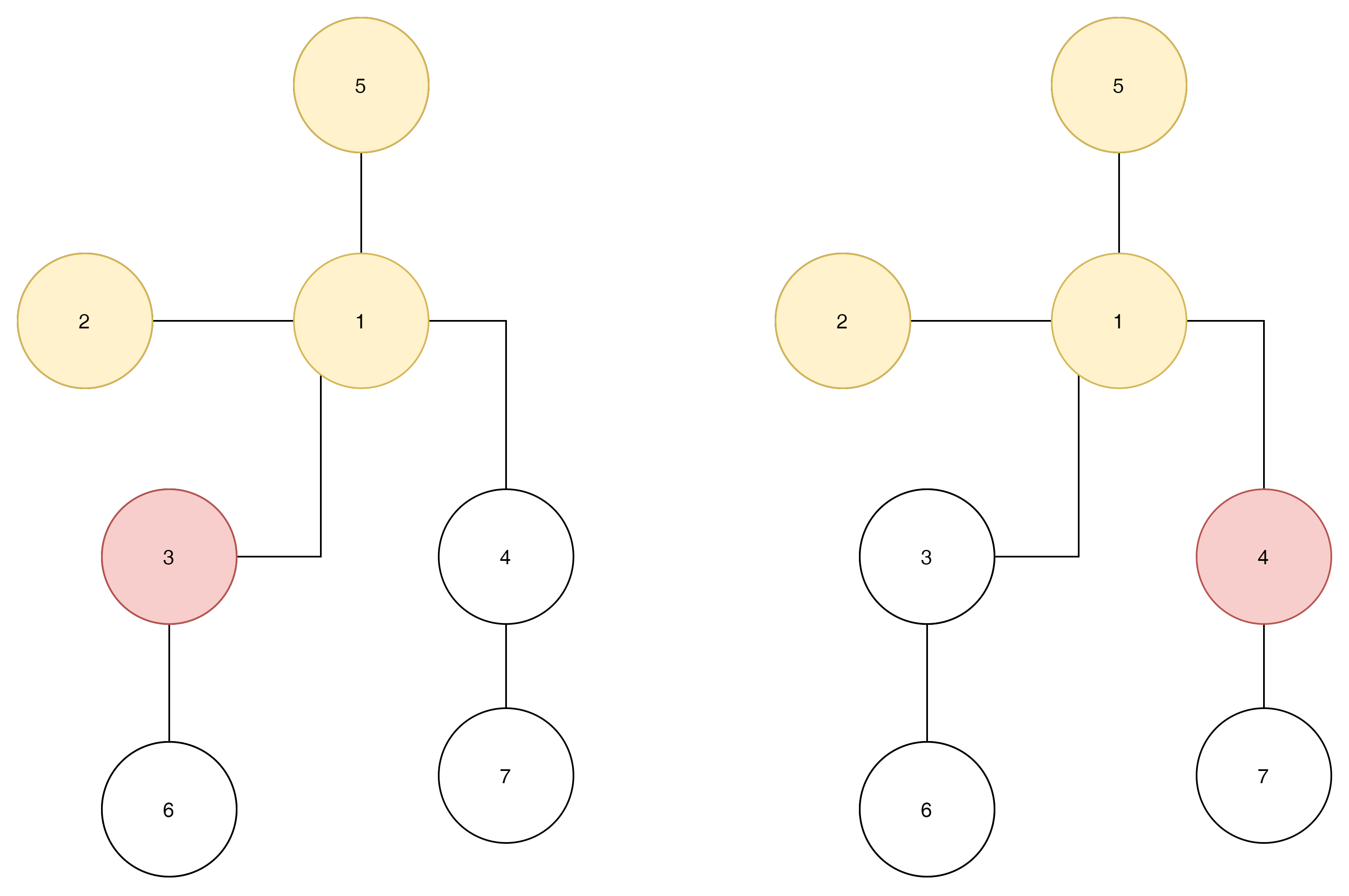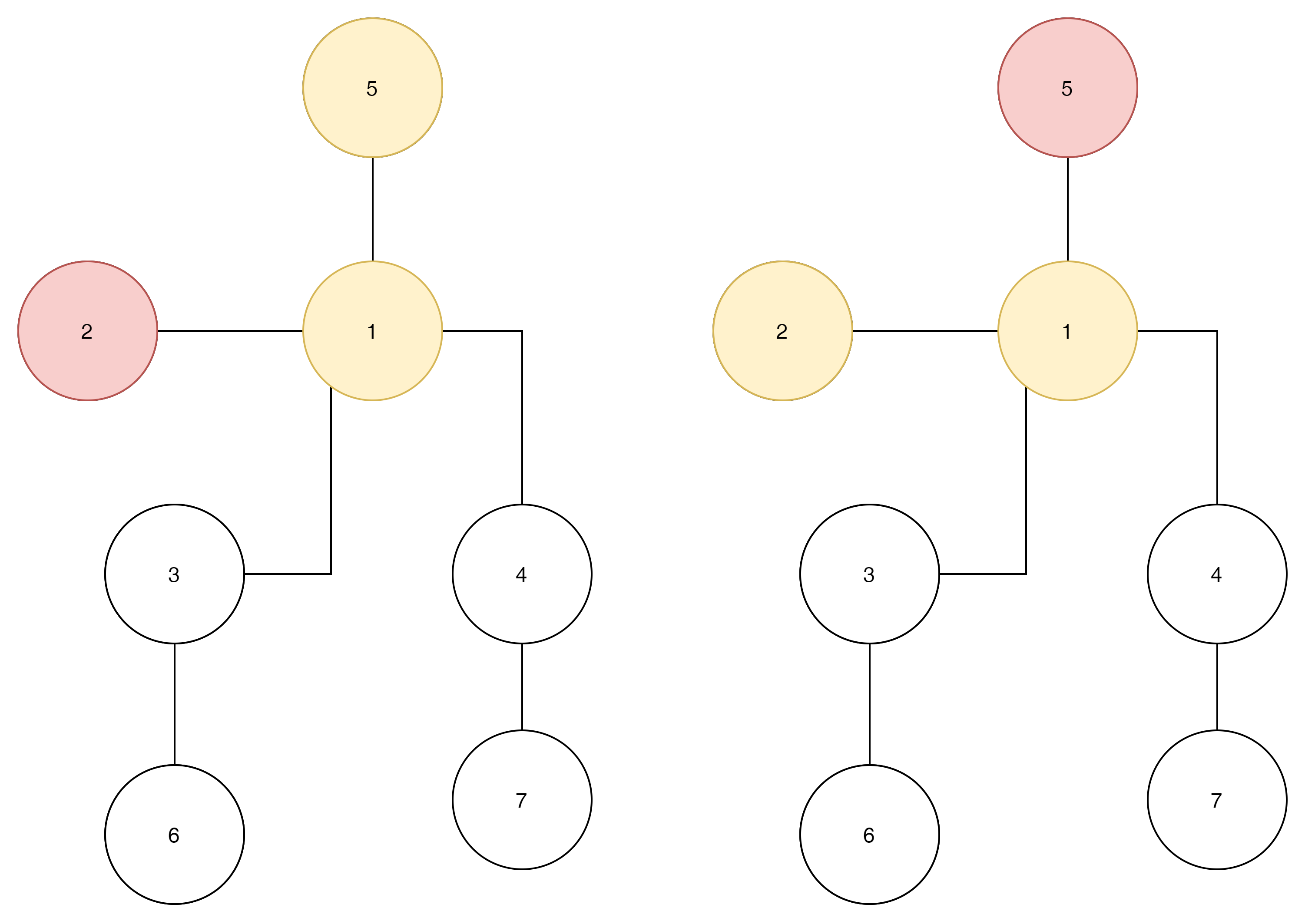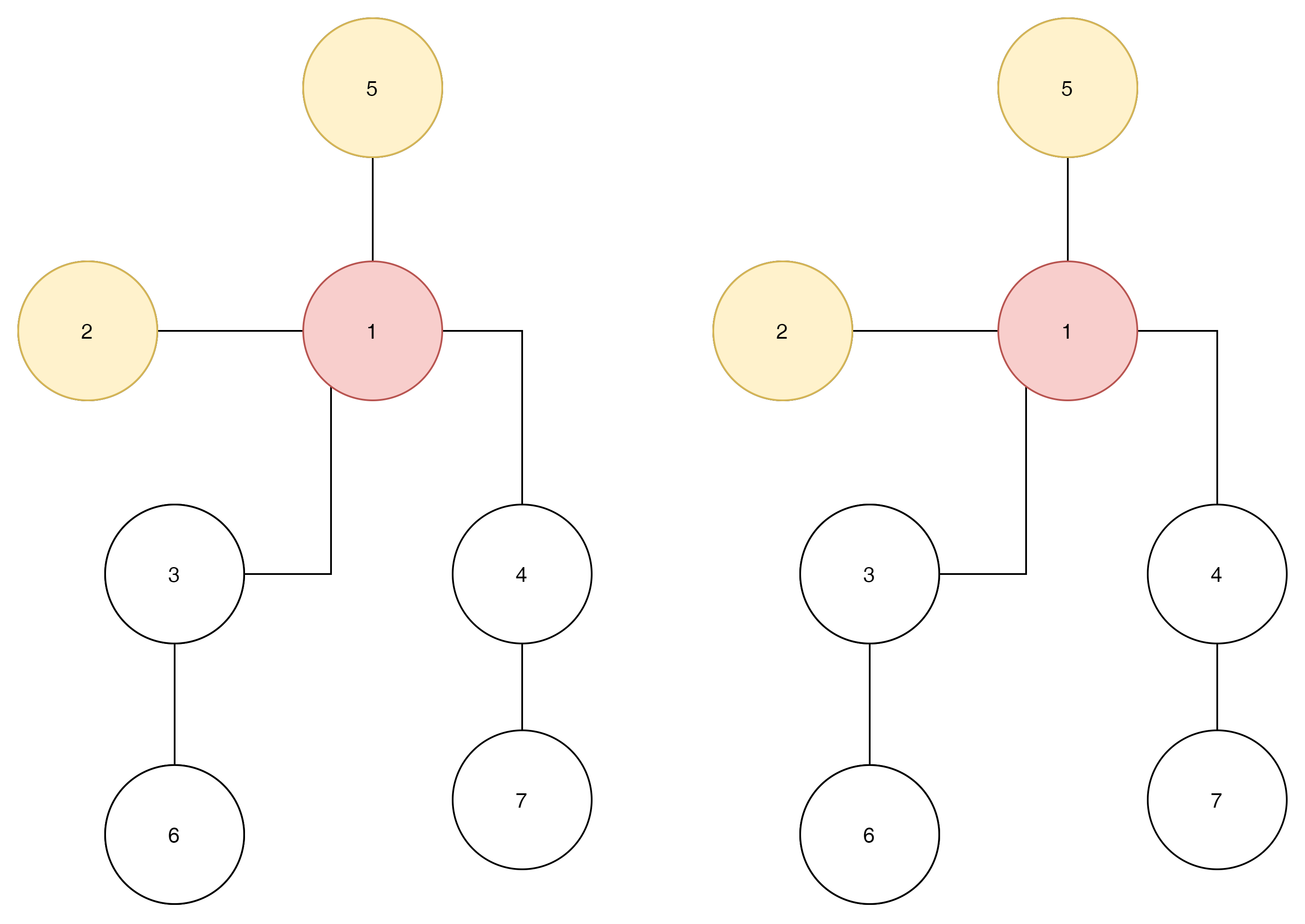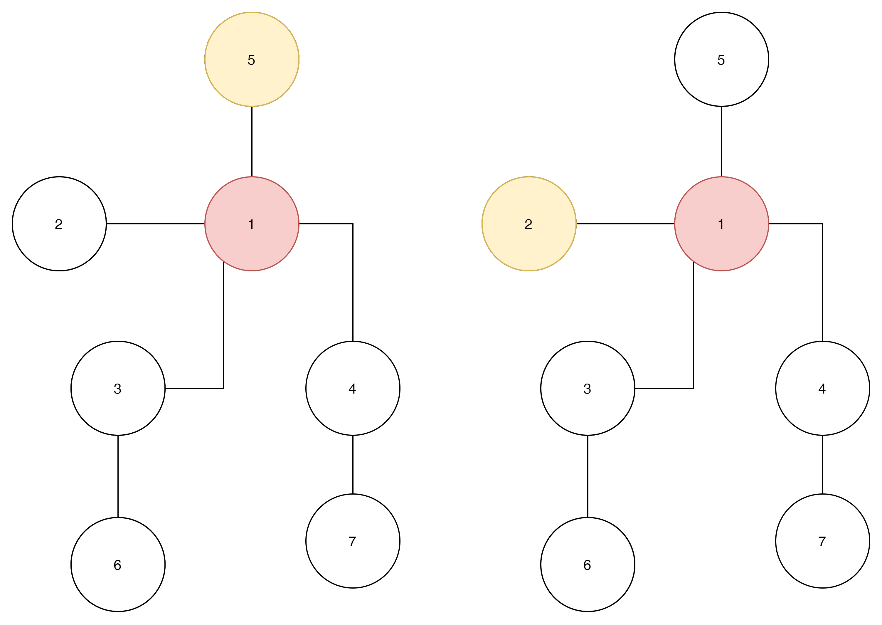 왼쪽과 오른쪽 모두 2번노드와 5번 노드를 visit 하고 1번 노드로 와있다면?