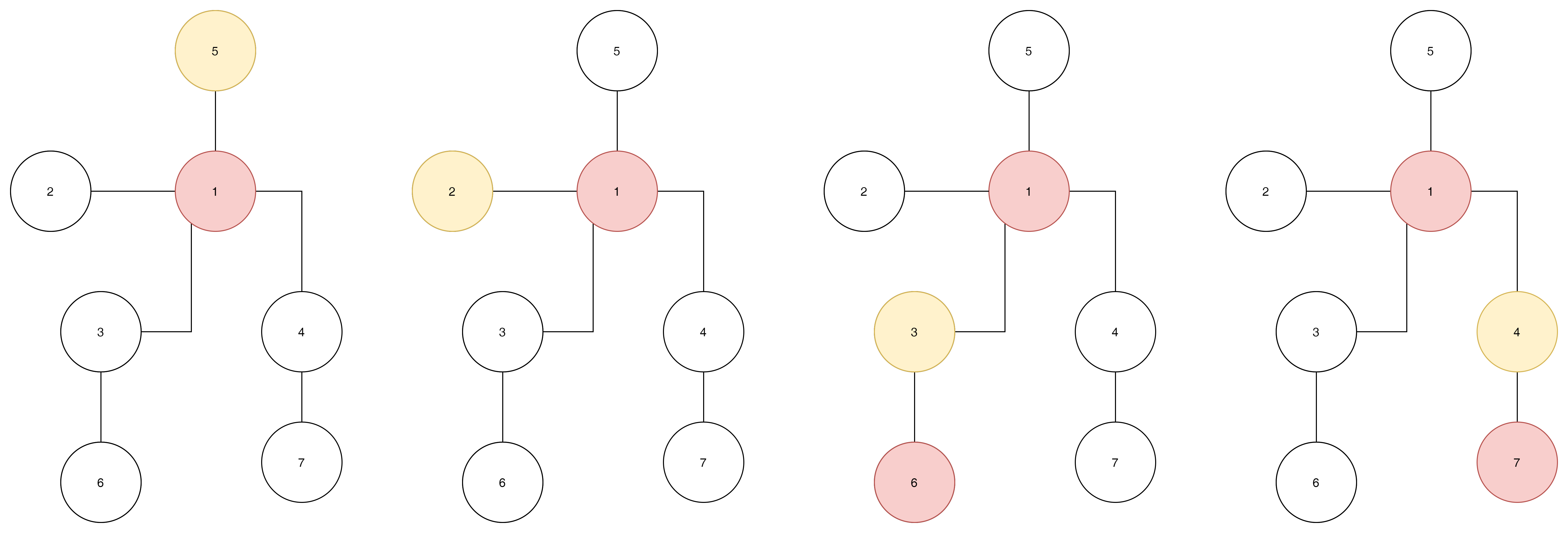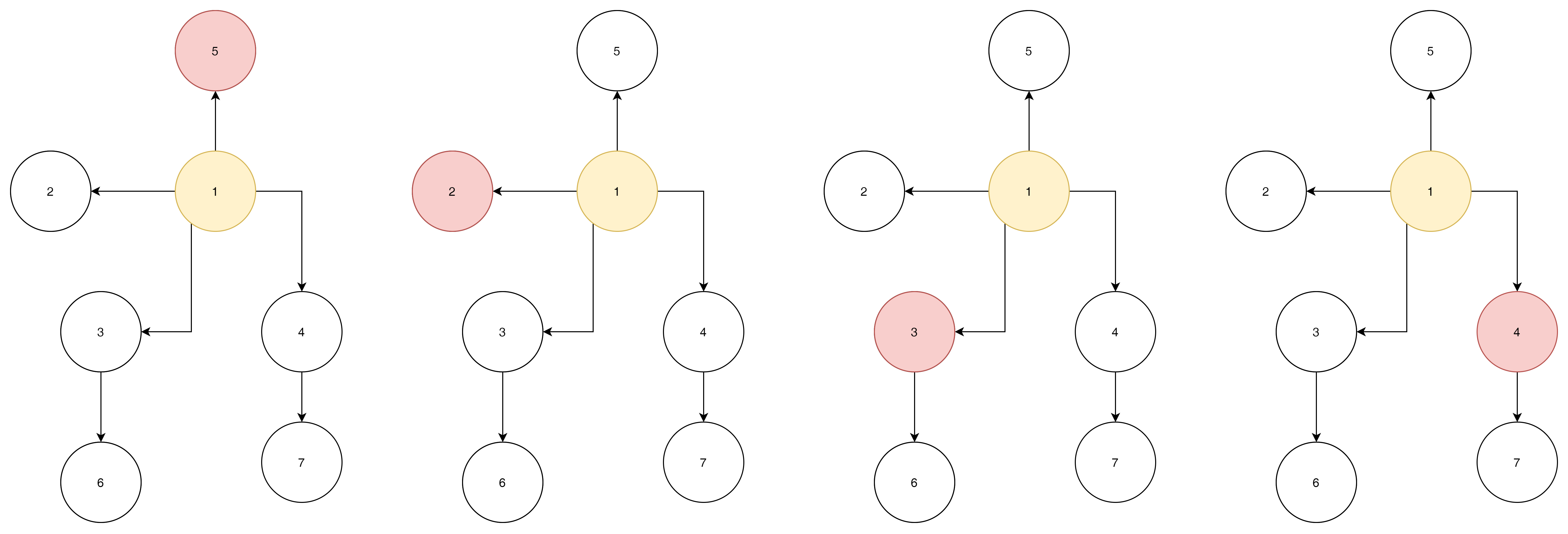 1번 노드는 2번을 3번 노드는 1번아니면 6번을, 4번 노드는 7번 아니면 1번을 선택해야 한다.