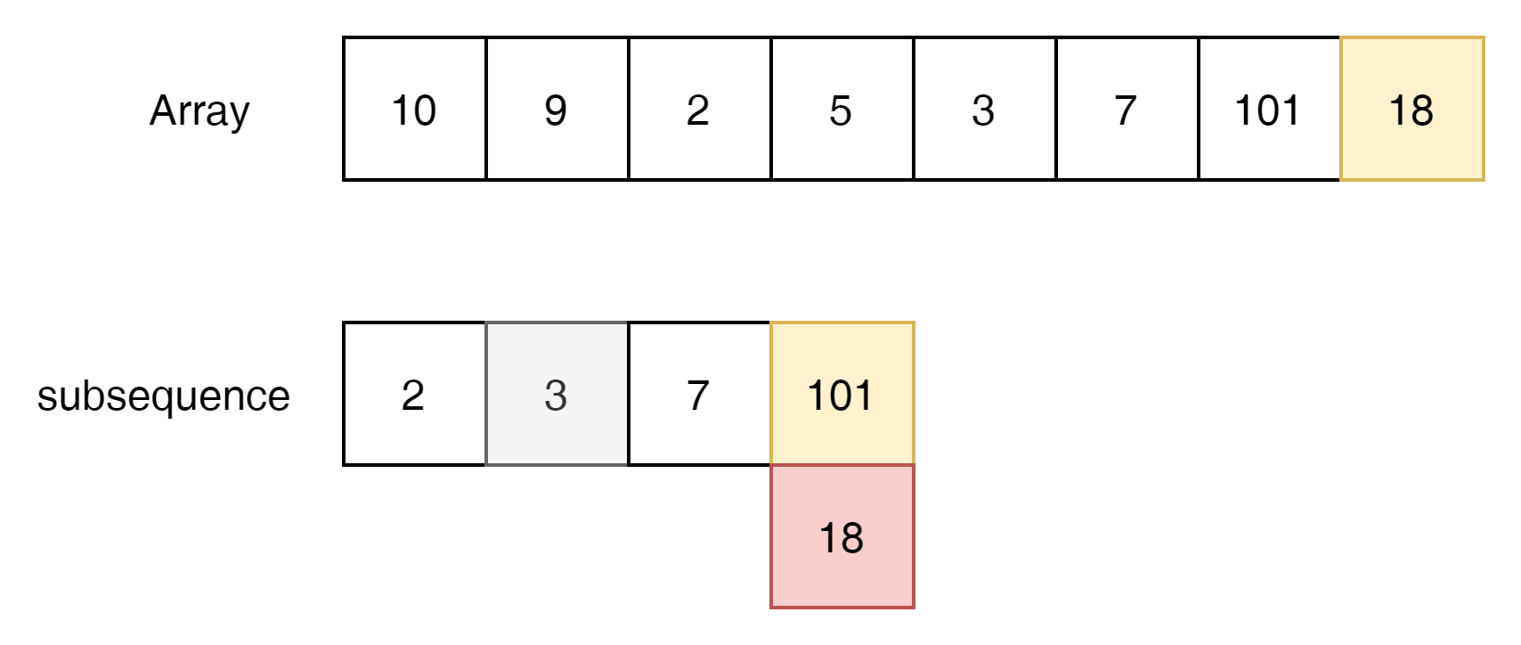 18은 101보다 작다. 그럼으로 101이 후에 append 될수 없다. 대신 18이 101을 대체 하게 된다.