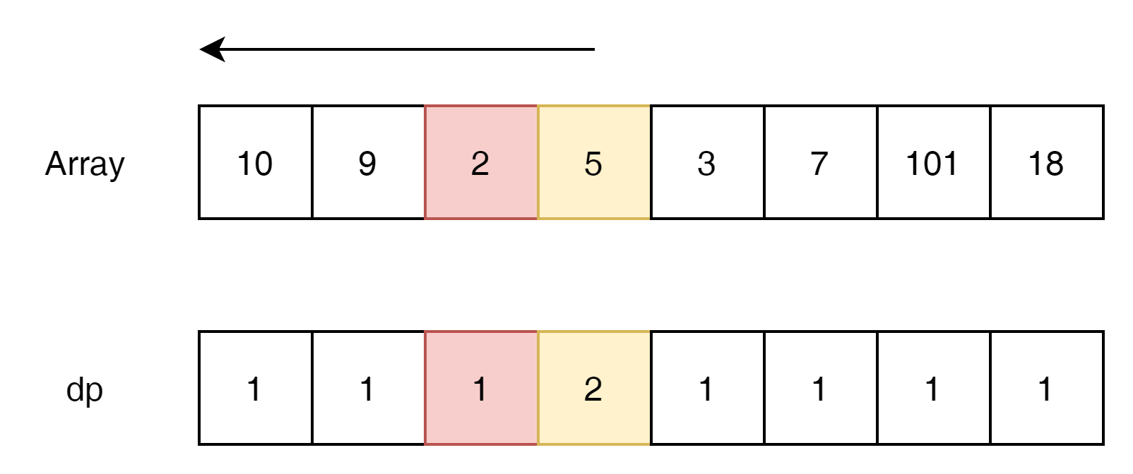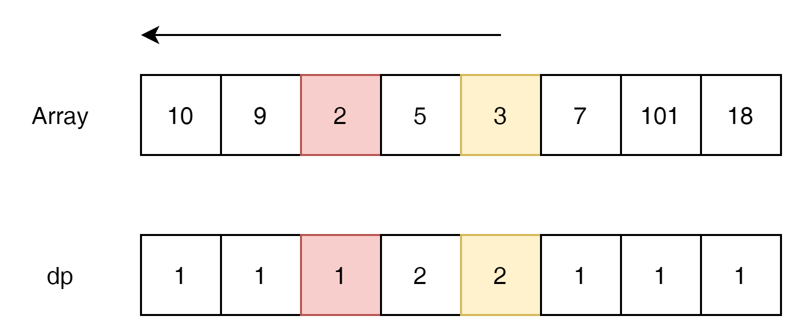 위의 방법과 같다면, "2->3->7->101" 7이후가 18이 들어갈 수 있는 직전 위치라는 것을 순차적으로 검색 했기 때문에 알 수 있다.