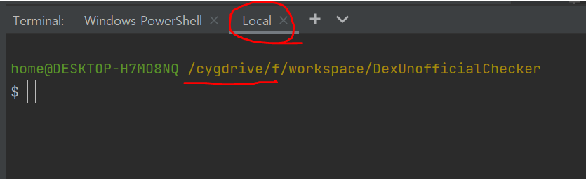이제 tab에서 '+'를 클릭하면 cygwin teminal이 작동 되는 것을 확인 할 수 있다.