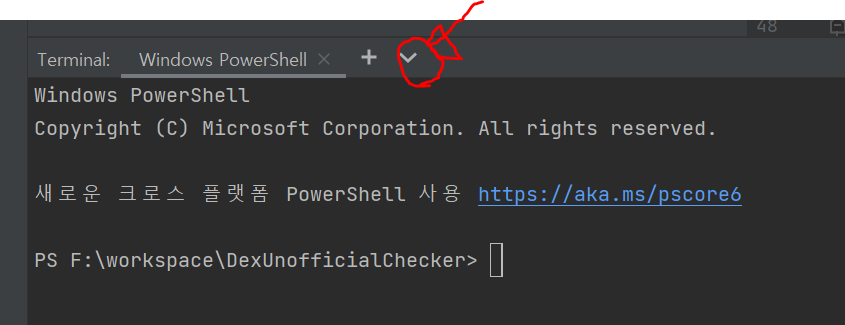 IDE에서 Terminal 최우측 화살표를 클릭한다.