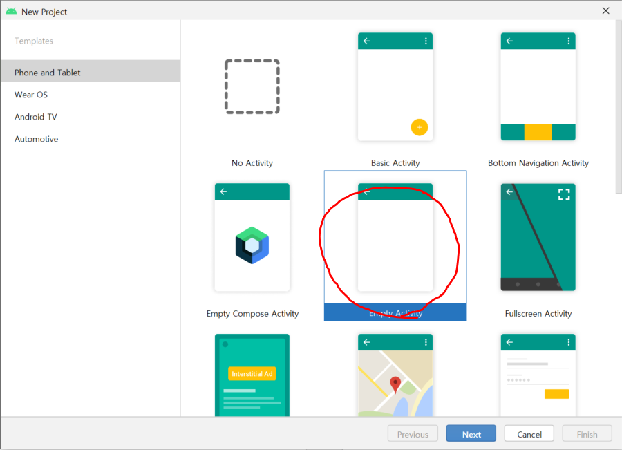 Empty Activity를 기반으로 신규 프로젝트를 만들어 준다.