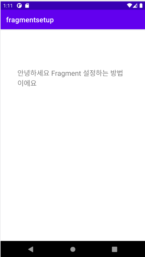 android:text="안녕하세요 Fragment 설정하는 방법이에요"