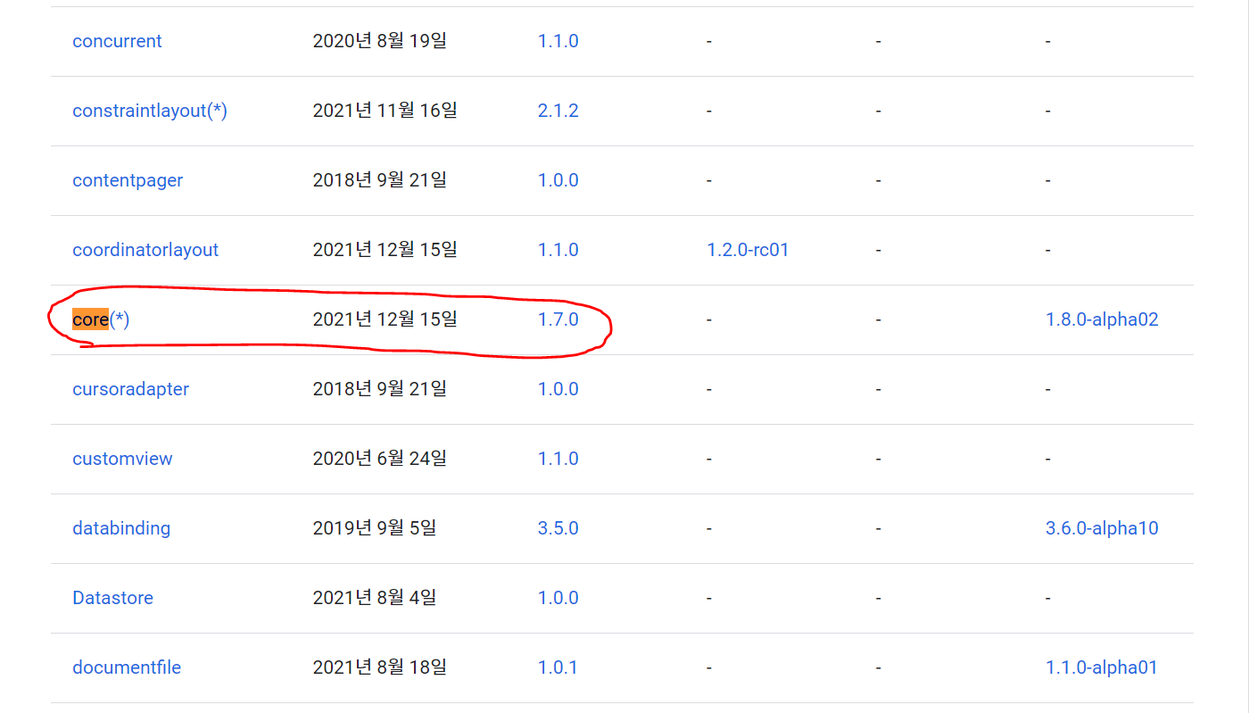 core와 appcompat 라이브러리 최신이 각각 1.7.0과 1.4.0 인것을 확인할 수 있다.
