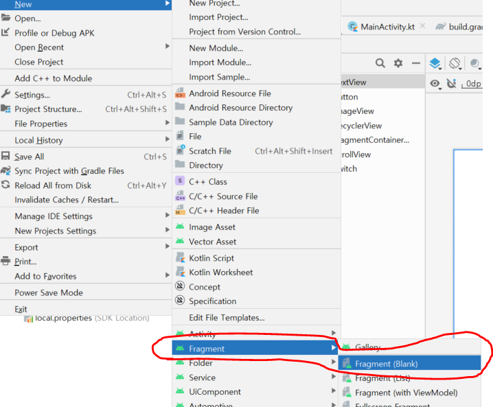 위의 위치에서 Fragment (Blank)를 선택하자.