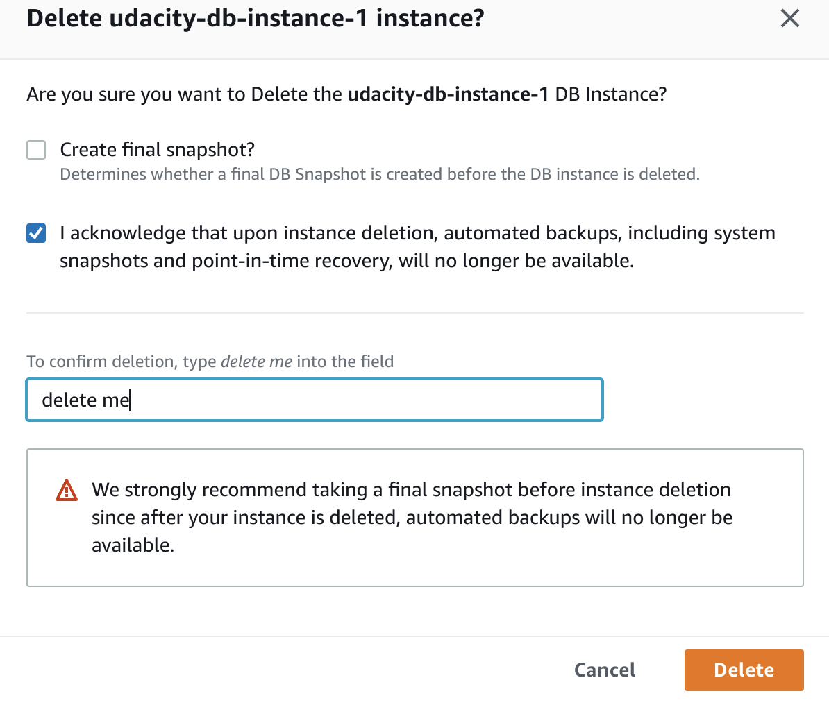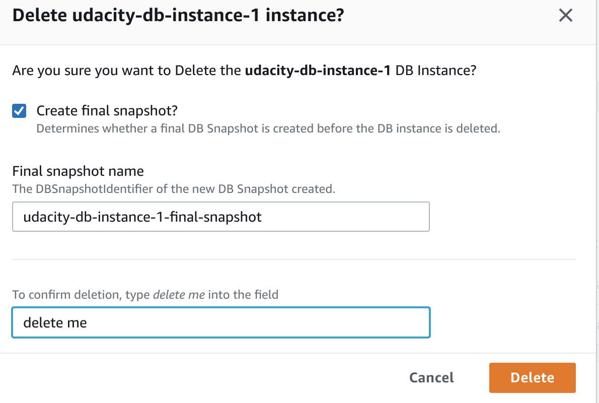 이 경우에는 db instance가 삭제되지 않는다.
