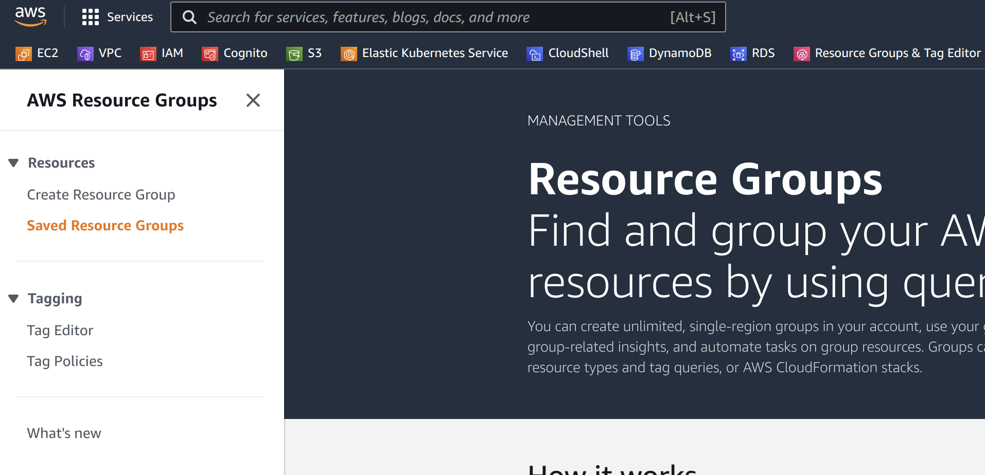 Service Search를 이용해서 AWS Resource Group으로 이동한다.