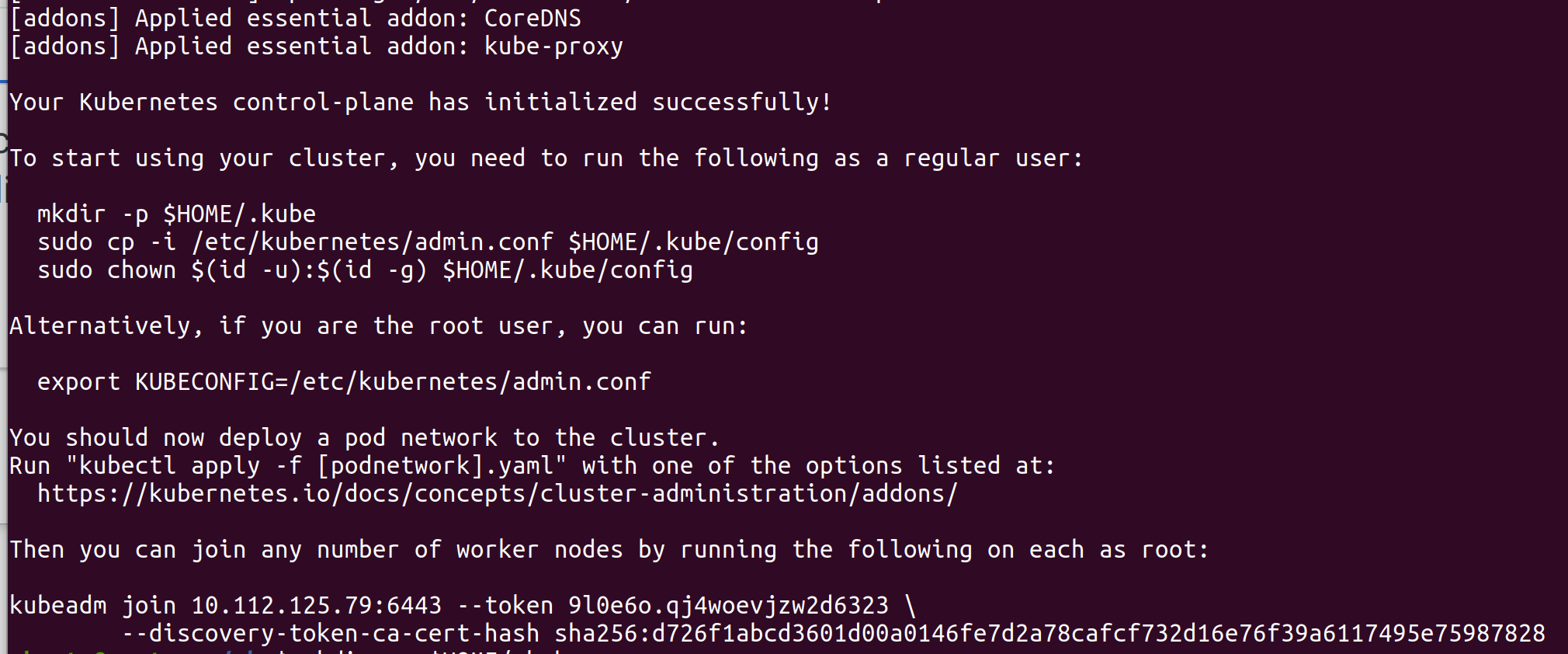 sudo kubeadm join 10.112.125.79:6443 --token 9l0e6o.qj4woevjzw2d6323 \
