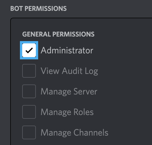 봇의 권한을 설정해 줘야 하는데, 과감하게 Administrator를 선택해 주자.