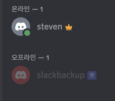 여기까지 성공했다면 아래와 같이 봇이 온라인이 된다.