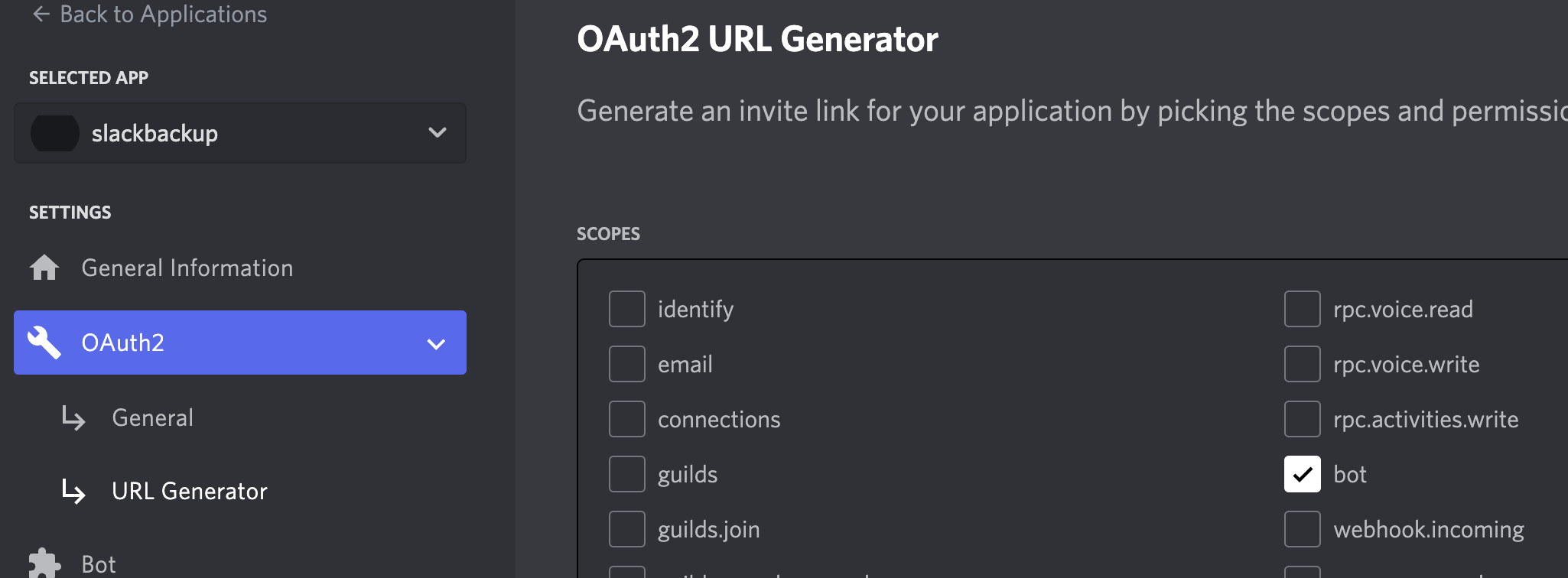 Scopes에서 bot을 선택한다.
