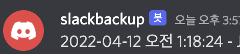 이런식으로 slackbackup 봇이 로드 된 '2022-04-12 오전 1:18 등등등'의 데이터를 입력해 준다.