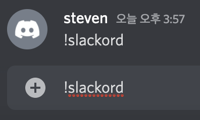 채팅창에 !slackord 라고 입력을 하면, 위에 로드된 데이터가 Discord 채널에 입력이 되게 된다.