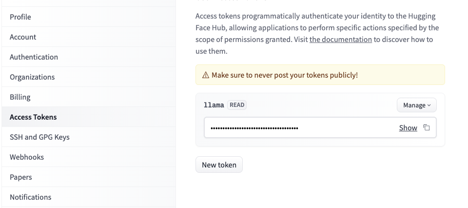 - hugging face에 로그인 할 수 있다.