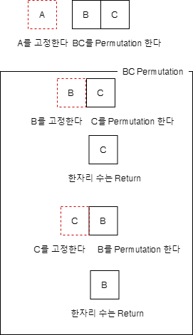 상기 이미지를 보면 ABC가 들어왔을 경우 A를 고정시키고 BC를 다시 Permutation Method에 넣는 것을 볼수 있다.