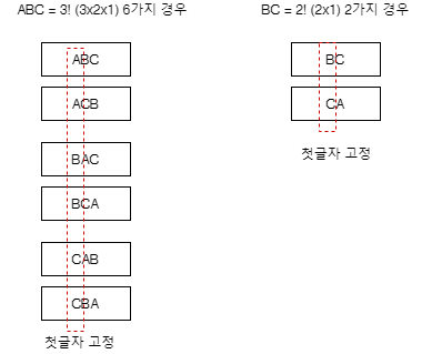 - 첫 글자를 Permutation 기능 내에서 고정시켜 나가면서 순환 시켜야 한다