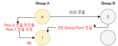 이 코드를 처리 할때 현재 Group A의 포인트가 어떤 Group B의 포인트와 연결 되었는지 다음 포인트로 정보를 넘겨 줘야 한다. 그래야 마지막으로 Group B의 남은 포인트를 확인 할 수 있다.